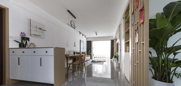 設(shè)計師根據(jù)業(yè)主的對未來的家的想象與期待,對此次裝修的特點定位為:北歐,原木,白色,收納容量大,引入光與影。