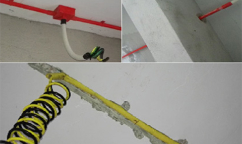 1、天花燈線統(tǒng)一用底盒出線;波紋管與底盒套杯梳纏膠布連接;離底盒兩端10~15cm用管卡固定牢固。 2、線管穿梁使用硬管,以防止電線被腐蝕。 3、天花燈線移位時(shí),用黃臘管穿線,并用絕緣膠布纏繞同時(shí)用綁扎法固定。