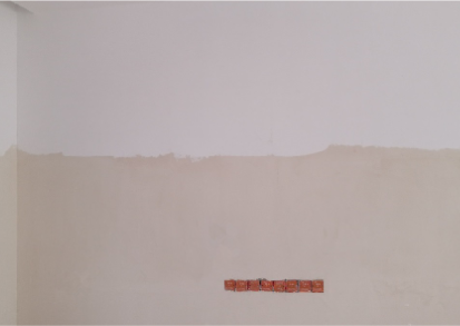 1、廚房、衛(wèi)生間大面積墻面磚鋪貼完,清理磚面,用公司統(tǒng)一水電標(biāo)示貼標(biāo)示水管線管走向。
