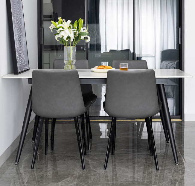 廚房以黑白色調為主,墻面用的是魚肚白墻磚,櫥柜吊柜和地柜均用的白色亞光烤漆,地板則延用與客廳一致的灰色大理石瓷磚?;疑珟r板的操作臺耐臟,在尺寸設計上沒有做下扣邊,讓巖板臺面更加精致地柜的設計上盡可能多的使用大件抽屜,使用更加方便。
