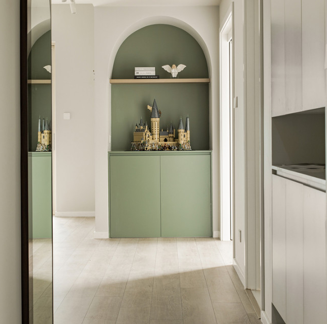 玄關(guān),一個過渡的空間。每日出門,會在這里整理妝容、衣服,光鮮亮麗地出門;每日歸家,也會在這里卸下整日的疲憊,進入家的溫柔鄉(xiāng)。