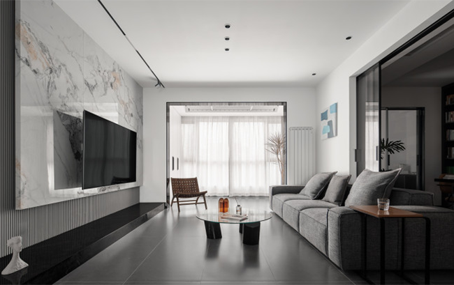 客廳在設(shè)計(jì)之初結(jié)合業(yè)主的想法,以黑白灰為設(shè)計(jì)思想核心,三者在空間里穿插平衡,留白,蘊(yùn)含著東方美學(xué)的思想,給人以無(wú)限的想象空間,白與黑的極致碰撞,融合灰色調(diào)性讓空間層次更為豐富。
