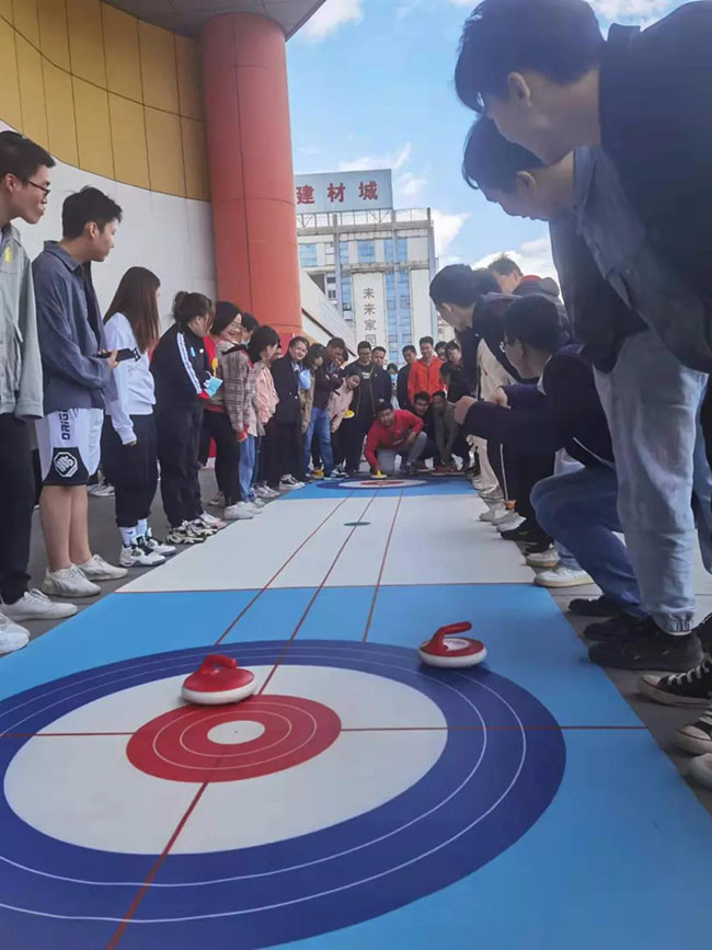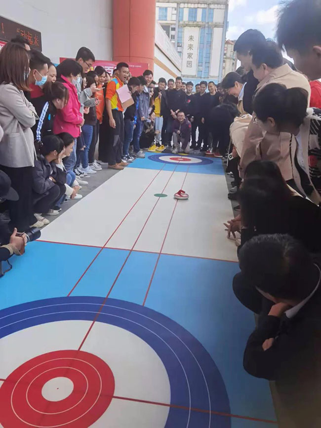 被譽(yù)為“冰上國(guó)際象棋”的旱地冰壺,是冬季奧運(yùn)會(huì)項(xiàng)目冰壺的普及版,在每一次投擲冰壺碰撞的過(guò)程讓大家收獲了滿足感、榮譽(yù)感,比賽過(guò)程緊張激烈,比分你追我趕,好球、妙球?qū)映霾桓F,既有團(tuán)隊(duì)協(xié)作保持勝利成果,也有孤膽英雄最后力挽狂瀾的成功,不到最后,一切皆有可能……